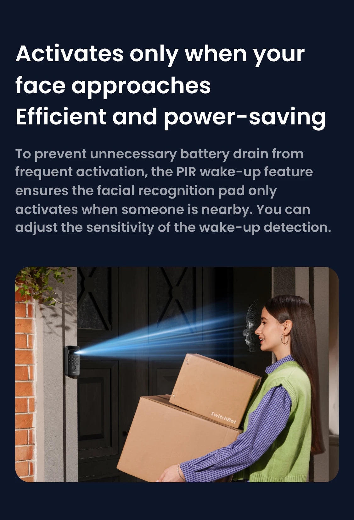 紅外線照明+雙感應器確保即使在黑暗中也能可靠地偵測人臉。