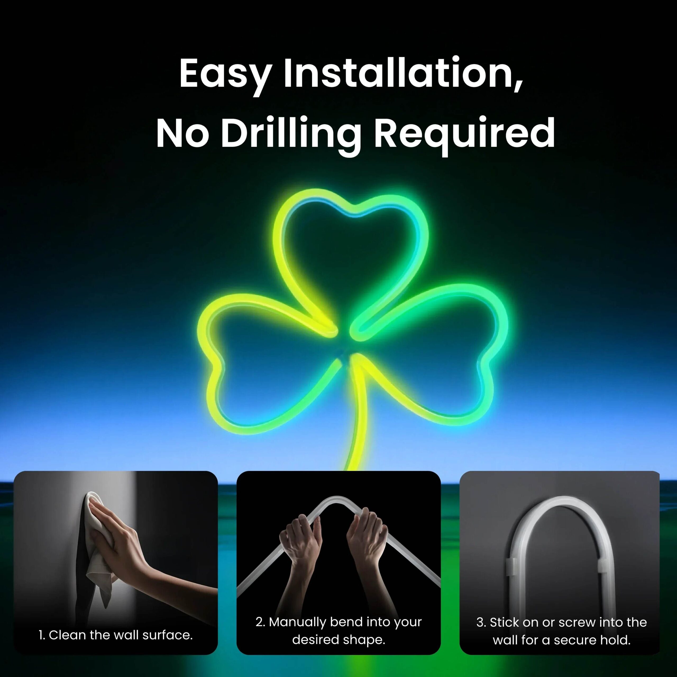 - 靈活設計,輕鬆滿足 DIY 樂趣:採用高柔韌性的材質與牢固的背膠設計,讓您輕鬆塑形與安裝。無論是勾勒家具輪廓、折出專屬的文字造型,還是打造個性化的牆面裝飾,這款智慧燈帶都能完美勝任。